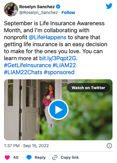We also activated our network of insurance company members and agents to help share Roselyn’s message. Creative campaign assets featuring Roselyn’s message in both English and Spanish reached their audiences in addition to Life Happens’ own 363K+ social media supporters.