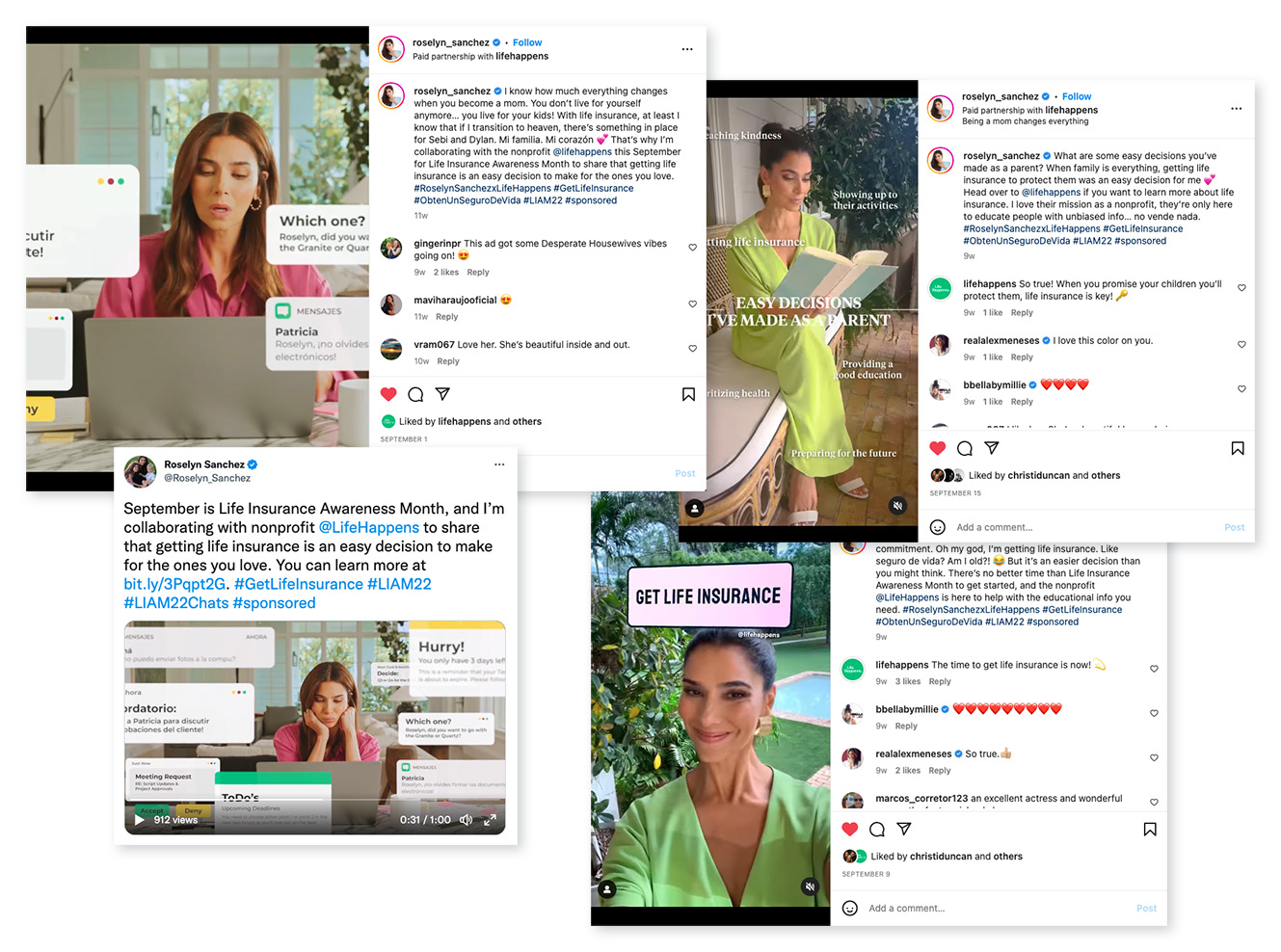 Life Happens collaborated with actress, producer, proud Puerto Rican and mother Roselyn Sánchez as our LIAM Spokesperson. She shared the campaign message: Life insurance—an easy decision. With a bilingual spokesperson, we were able to deliver this message in both English and Spanish for the first time.
